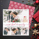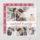 Elegant Modern Calligraphy White and Red 4 Photo Collage Married and Merry Christmas Card. This mimimalist festive newlywed christmas card features four (4) grid photo collage and „Married and Merry” greeting text which is written in a beautiful hand lettered swirly swash-tail font type in red and white. On the reverse side pretty snowy snowflakes in red and white. Pretty greeting cards easy way to send greetings to family and friends for your first Christmas as husband and wife in Christmas Holiday season.
