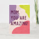 Tell your mom she's an amazing woman with bold text on a modern background of trendy color blobs in coral pink, lavender purple and bright citron yellow on a textured background of blush pink. All the text is editable for a totally custom mother's day card.