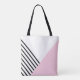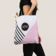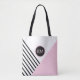 A contemporary pop art geometric pattern with a retro feel, this fashion forward tote bag has angled black stripes and pink color block with a prominent matching round frame surrounding your monogram. Personalize with your desired monogram for a custom tote that makes a wonderful gift or treat for yourself.