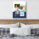 This custom photo collage canvas print features stylish color blocks and typography with a gold & blue color theme. Replace these 4 photo collages with yours and personalize the text with your family name and initials.