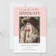 A graduation announcement with contemporary style, this design features a blush pink and white color block background with a thin soft gray frame surrounding your vertical portrait. A text template in crisp modern type face is ready to personalize with the graduate's name, class year and school. Load your desired photo in place of the sample photo shown in this announcement card. This feminine versatile design works well for graduates from high school, college or university.