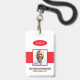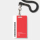 A modern and simple badge that does not distract from the important details. Easy to read from afar. Add a custom logo and company details. Add the employee's name, photo, and professional title. The bar of color can be modified to match the company's official colors. At the back, add more information such as return address and the employee's ID number. Perfect for oval shaped logos.