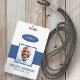 A modern and simple badge that does not distract from the important details. Easy to read from afar. Add a custom logo and company details. Add the employee's name, photo, and professional title. The bar of color can be modified to match the company's official colors. At the back, add more information such as return address and the employee's ID number. Perfect for oval shaped logos.