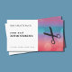 Modern elegant customizable appointment card for hair stylist. Design with colorful abstract background and black scissor pattern.