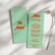 A colorful retro funky modern green wedding dinner menu. Which features chic template design of boho vintage green background and orange bold typography . And bright back green background. Perfect and matching with the whole suite.