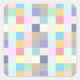 This is a trendy and stylish design featuring multicolored squares arranged in a checkered pattern on a neutral grid background. The squares come in various colors like blue, green, pink, purple, yellow, gray, orange, and rainbow pastel shades, arranged to create a unique and joyful geometric checkerboard design.