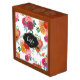 Modern colorful spring flowers handprinted stay watercolor illustration. White background, black accent and customizable monogram.