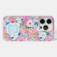 Customize this gorgeous modern colorful flower garden of flowers in pink, blue, purple and yellow iPhone 15 pro case with your your initials in a modern CAP font in white on blue. It's so vibrant and happy!