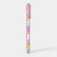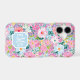Customize this gorgeous modern colorful flower garden of flowers in pink, blue, purple and yellow iPhone 17 case with your your initials in a modern CAP font in white on blue. It's so vibrant and happy!