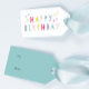 A fun way to add personality to your gifts. A bright, modern happy birthday gift tag and color block back with space to write on.