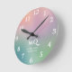 Modern Colorful Pastel and White Monogram Initials Round Clock