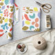 Fun modern birthday wrapping paper. Modern and colorful with a randomly scattered pattern of organic shapes in Flat Design style. Crescents, blobs, foliage, footprints and spots in trendy colors of red, green, blue, orange, yellow and gold. Modern Colorful Patterned Wrapping Paper