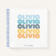 Modern personalized repeating name in a geometric font in fun, bright shades of blue and orange on a white background. There are 5 lines of text for shorter names (up to 7 or 8 characters depending on the letters). A fun personalized gift for yourself, friend, or loved one.