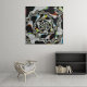 This canvas features an abstract, psychedelic spiral fractal art in black and white with yellow, orange, blue, and green accents.
