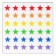 Colorful starry pattern with primary and secondary colors of a color wheel. Yellow, red, blue, orange, green and purple star design. Happy colors of the visible spectrum. Playful stars can bring a sense of hope and optimism for the future.