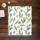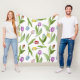 The product design features a pattern of colorful tulip flowers in purple, red, pink, blue, and yellow. This botanical illustration makes a modern and unique fleece blanket - Gift idea for birthday, Easter, Mother’s Day, wedding, and more!