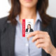 Easily personalize this red professional employee photo ID badge with your custom details.