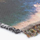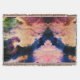 A quality printed throw has its advantages. This is a much finer weave throw than its loopier cousins, and though lighter, it is worth the investment for custom room accessorizing. The back is much prettier than the typical brown, and the fringe on the long sides very vivid, the selvage nicely done. Before photographing, I washed the throw in cold water, delicate, with a thicker woven throw the same size. On tumble dry low, this throw was dry in half the time as the other. This is a very practical quality if you use throws for furniture covers or to wrap up in frequently. The sleekness of the fabric makes it a great layer for accenting or protecting without the feeling of sitting on too much stuff. Perfect for napping or when you feel a light chill coming on. The color printing is beautiful and on this fabric, matched the design and color of my Photoshop image. This is an advantage for blending room fabrics and colors. The fringe on the short sides prints the colors from the design image and therefore varies from the side fringe. I streaked a white fractal line through the plaid pattern to give the illusion of weaving. This printed as crisp as an illusory thread, and put some white in the short side fringe, showing another advantage of print vs loomed- for artistic purposes, line lines, detail, and color integrity can be planned and preserved. My loomed throws have color limitations and more of a needlepoint texture. Print throws reproduce an exact image. The throw felt a little stiff straight out of the package, but this went away in the first delicate wash. Of course I searched the wash water for ink or bleeding and there was none.