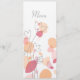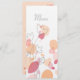 Double-sided simple modern flower petal confetti style floral wedding reception dinner menu in orange, gray, pink reds and white. ©Uniquely drawn and designed by Sarah Trett