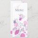 Modern confetti flower petals wedding or formal dinner menus. Double-sided simple modern line art flower with petal confetti style pink, purple and dark blue dinner menu. Uniquely drawn and designed by Sarah Trett for www.mylittleedenweddings.com