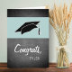 Modern Congrats Chalkboard Graduation Card with a Graduate Name. Graduation card with graduation cap, modern white typography text Congrats and a name of the graduate on the front side - personalize with your name. The text is on a modern grey chalkboard background and the cap is on blue. Personalize the text inside the card to suit your needs.