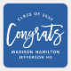 Modern Congrats Script Blue Graduation Square Sticker