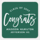 Modern Congrats Script Green Graduation Square Sticker