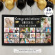 Congratulate and recognize your graduate with 29 photos for a fun photo collage banner sign for everyone to enjoy at the graduation party. Personalized with the graduate's name and class year. Editable black background with modern faux metallic gold foil graduation cap and diploma accents. The black background color and text font style, color, size and placement can be change by clicking on the CUSTOMIZE FURTHER tab in the PERSONALIZE section. PHOTO TIP: For fastest/best results, choose a photo with the subject in the middle and/or pre-crop it to a similar shape as shown BEFORE uploading. Contact the designer via Zazzle Chat or makeitaboutyoustore@gmail.com if you'd like this design modified or on another product.