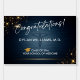 Modern Congratulations Medical School Graduate Party Sign in Blue, White, and Gold. Faux gold glitter graduation cap. Graduate name, class year, and school name are customizable.