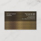 Modern construction business cards with an industrial look that includes a simulated gold mesh background and name emblem you can customize with your business name on the front and all your business information on the back in this smart two side design you can personalize to suit your needs. Designed for a construction company, industrial goods or services, or builder.