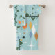 Modern contemporary 50s abstract starbursts blue bath towel set.