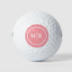 Cool modern monogram design with white text on a pink background. These golf balls Make a classy gift for a golfer. Comes in a variety of colors. Designed for you by Blackberry Boulevard