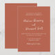 Yes, you can print on the back of your invitation for free! Most designs already have a corresponding design on the back that can be personalized using the Design Tool and going to Layers. This is a great way to communicate more information or further personalize your Modern Burnt Orange Simple Wedding Invitation. The option is really up to you.