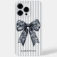 Modern Coquette Gray Stripes Girly Bow Custom Name Case-Mate iPhone Case