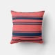 Modern Coral Red And Blue Stripes Pattern Throw Pillow