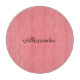 Coral peach solid colored background. TEMPLATE for a name in Black Script. A Modern kitchen cutting board featuring an easy-to-personalize template, for the perfect custom kitchen.