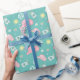 Modern Cowgirl Cancer Zodiac Pattern Teal Wrapping Paper