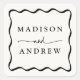 Modern Cream and Black Wavy Frame Wedding Square Sticker