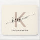 Modern cream beige script monogram name mouse pad