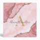 Modern Cream Blush Pink Agate Geode Monogram 3 Ring Binder