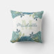 A simple minimalist monogram initial home décor pillow. this design features a watercolor monogram monogrammed initial, flowers blue hydrangea vintage chic, country hydrangeas elegant pretty floral, fancy calligraphy script typography, simple garden summer spring décor, colorful vibrant floral feminine, French country vintage botanical, old fashion horticulture garden, a teal aqua turquoise flowers, sun room pillows custom customized