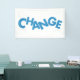 Modern, playful, simple graphic design of a word "Change" in motion, movement concept. Vibrant, urban, trendy and creative graphic art in blue color.