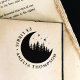 Modern Crescent Moon Trees & Stars Round Ex Libris Rubber Stamp