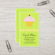The beautiful lime green yellow cupcake business card is ideal for bakeries, bakers and artisan bakers. The vertical cupcake bakery business card shows a delicious looking cupcakes with a beautiful lime green background and yellow cupcake silhouettes forming a pattern.. Personalize this business card and make it yours today.