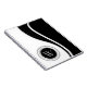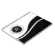 An elegant custom notebook for home, school, or office, this classic design features a black and white curved pattern trimmed in silver. The white background color may be customized to other color choices. Personalize with your monogram using the simple template.