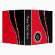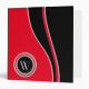This modern design features a curved pattern in black and red with silver border. Embellished with a silver round monogram frame, this item is ready to personalize with your monogram, name, text, or logo. The text on the spine may be customized or you may omit this feature if you wish to have that area blank. Also customizable is the red background color. Choose from a wide array of background colors available when you select "customize it".