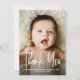 Designed with a stylish hand-lettered "Thank You" script and clean modern layout, this card lets you thank your family and friends for their love and support while also introducing your newborn in a meaningful way.