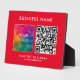 Upload Your Business Company Logo QR Code Here Add Text Slogan Elegant Modern Custom Template Horizontal Red Tabletop Plaque with Easel.