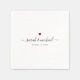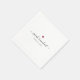 Minimalist cute simple red heart wedding napkins with your custom names in elegant script calligraphy over the date of your celebration.