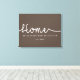 Minimal HOME wall art on brown canvas print. Make a great unique entryway piece. Simply add your home's GPS coordinates and established date using the easy personalize button. You can find your coordinates by visiting https://www.gps-latitude-longitude.com/ Makes a great housewarming gift for new homeowners.